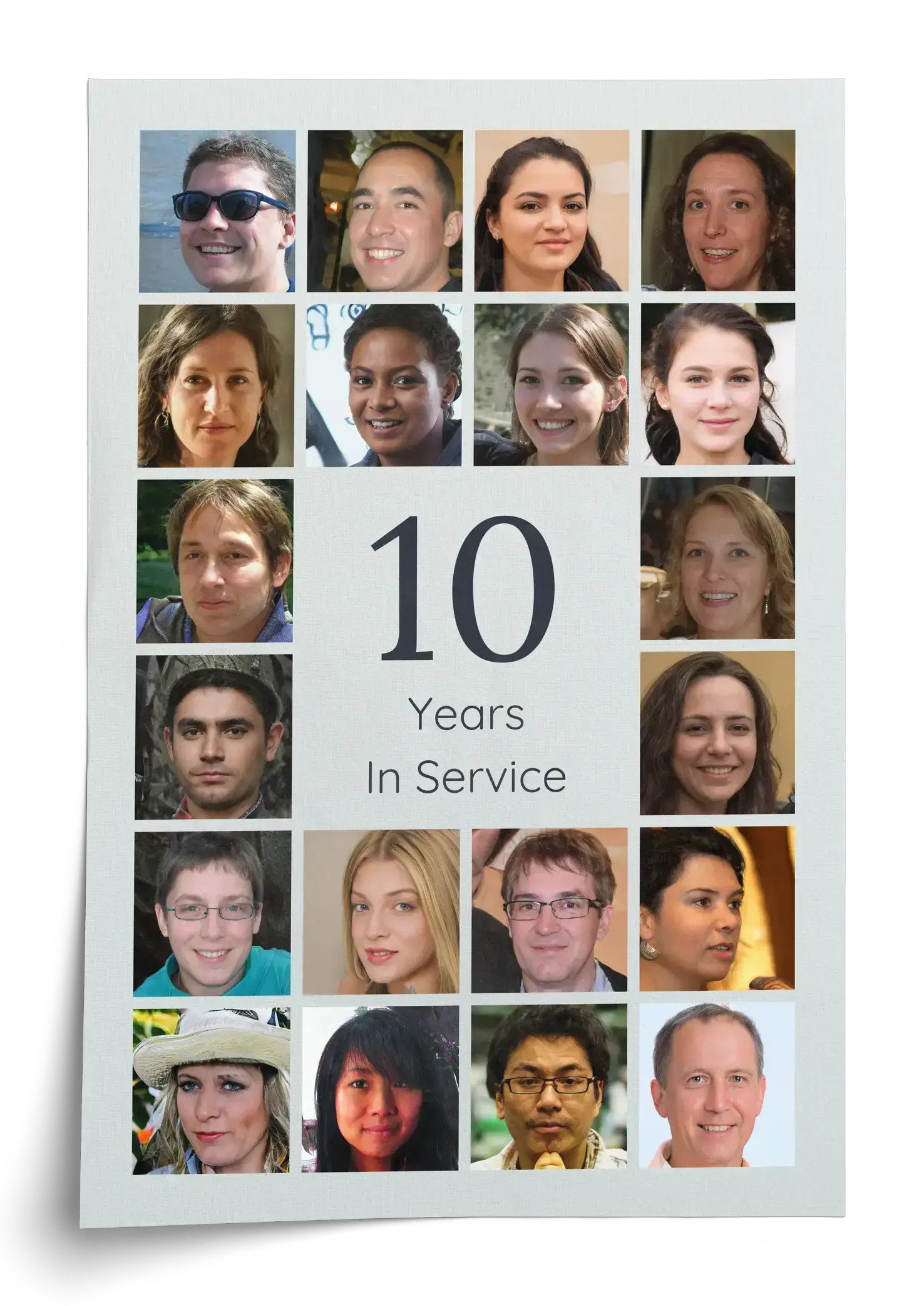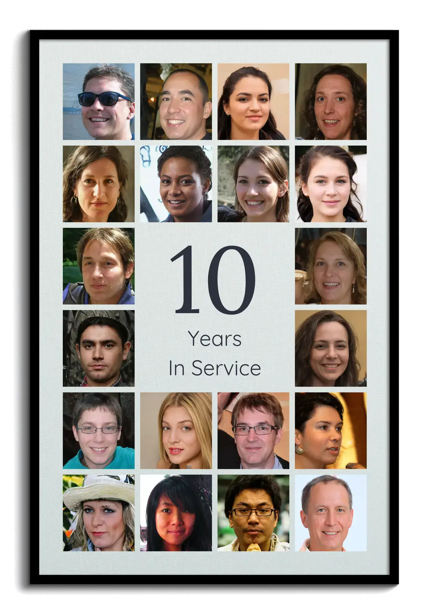 Customizable 10-year number photo collage for work anniversaries, weddings, businesses, friendships.
