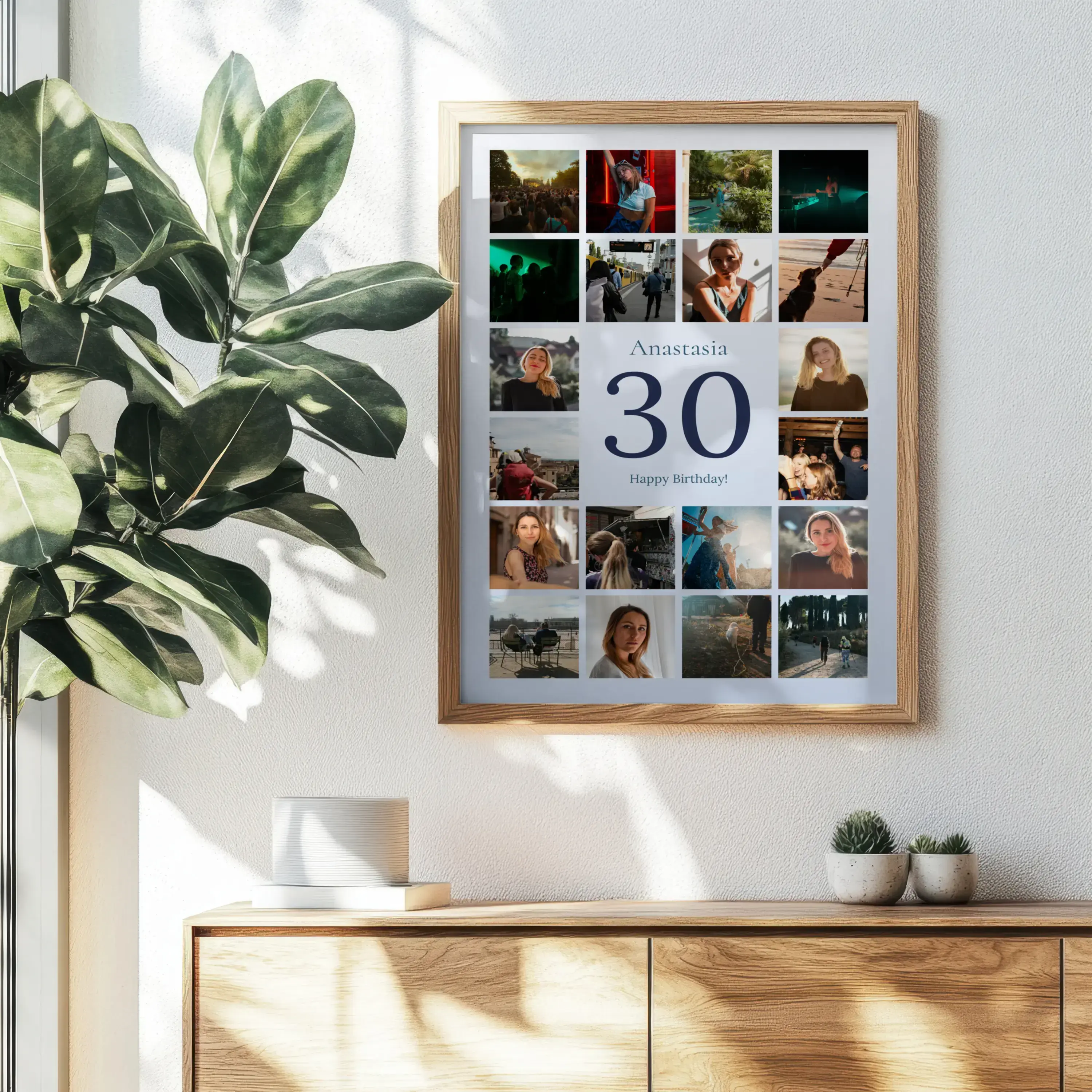 Custom 30 photo collage—perfect for 30th birthday, 30th anniversary, or 30 years of service.