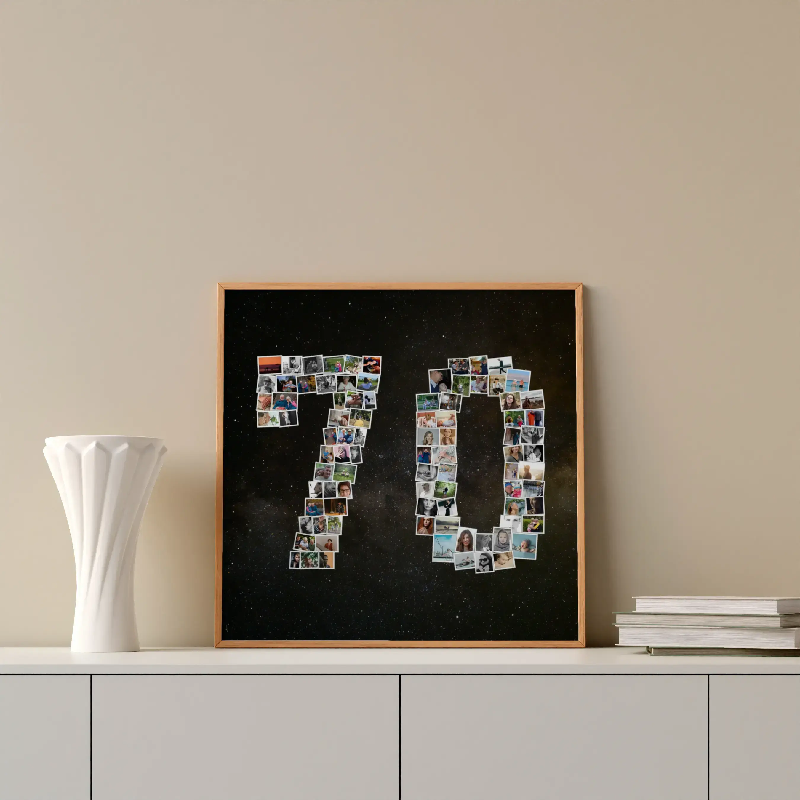 Celebrate 70 with a photo collage: 1-100 pictures for a memorable milestone gift.