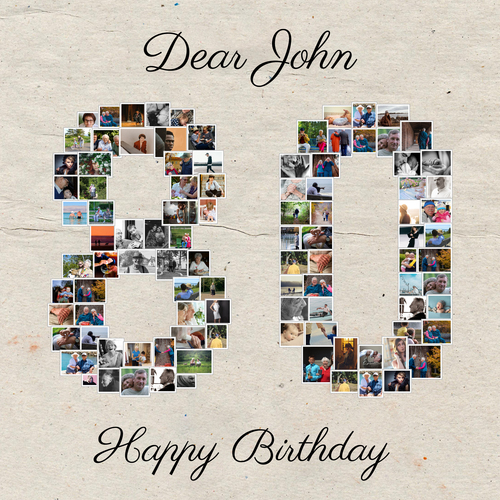 Celebrate milestones with photo collages in '80' shape, ideal for birthdays or lasting bonds.