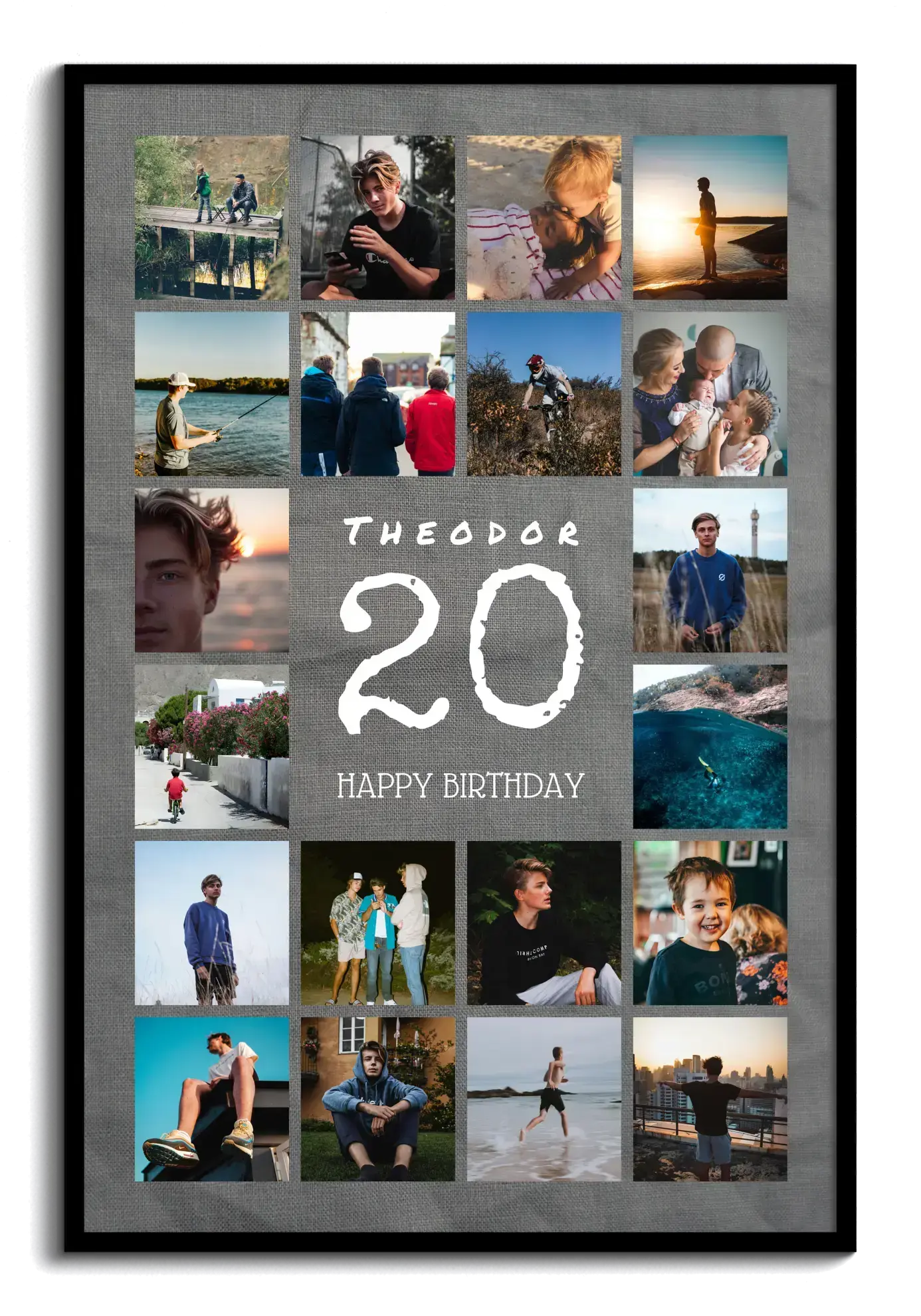 20 Number Photo Collage – Create yours (any number), name, text & 20–80 photos