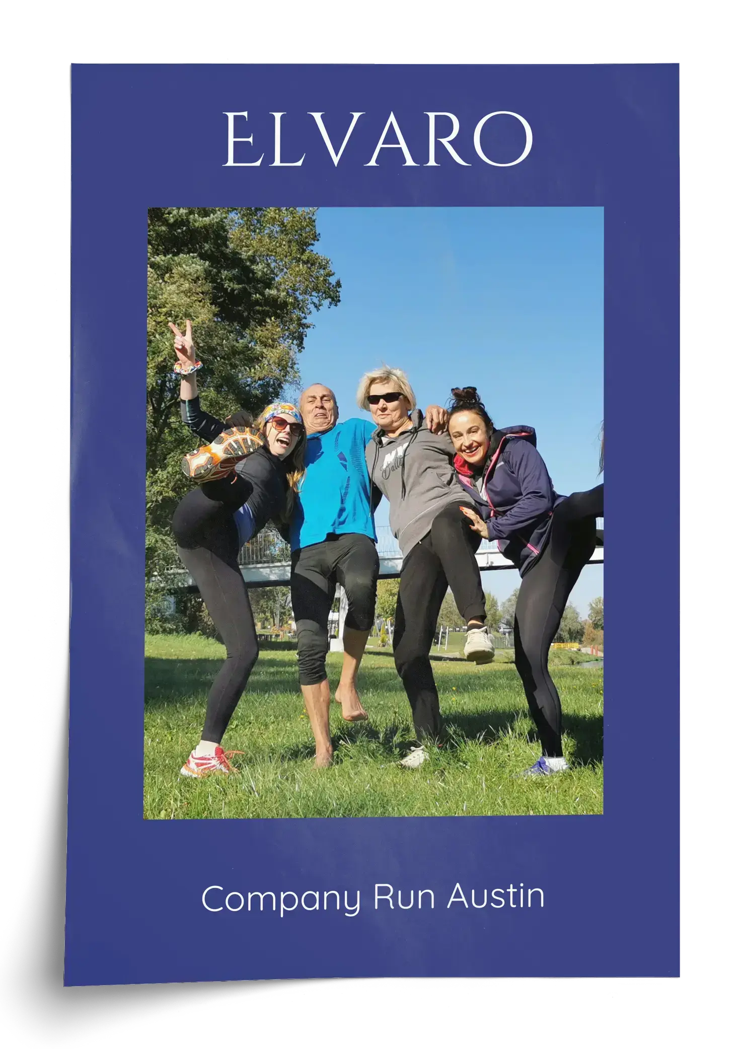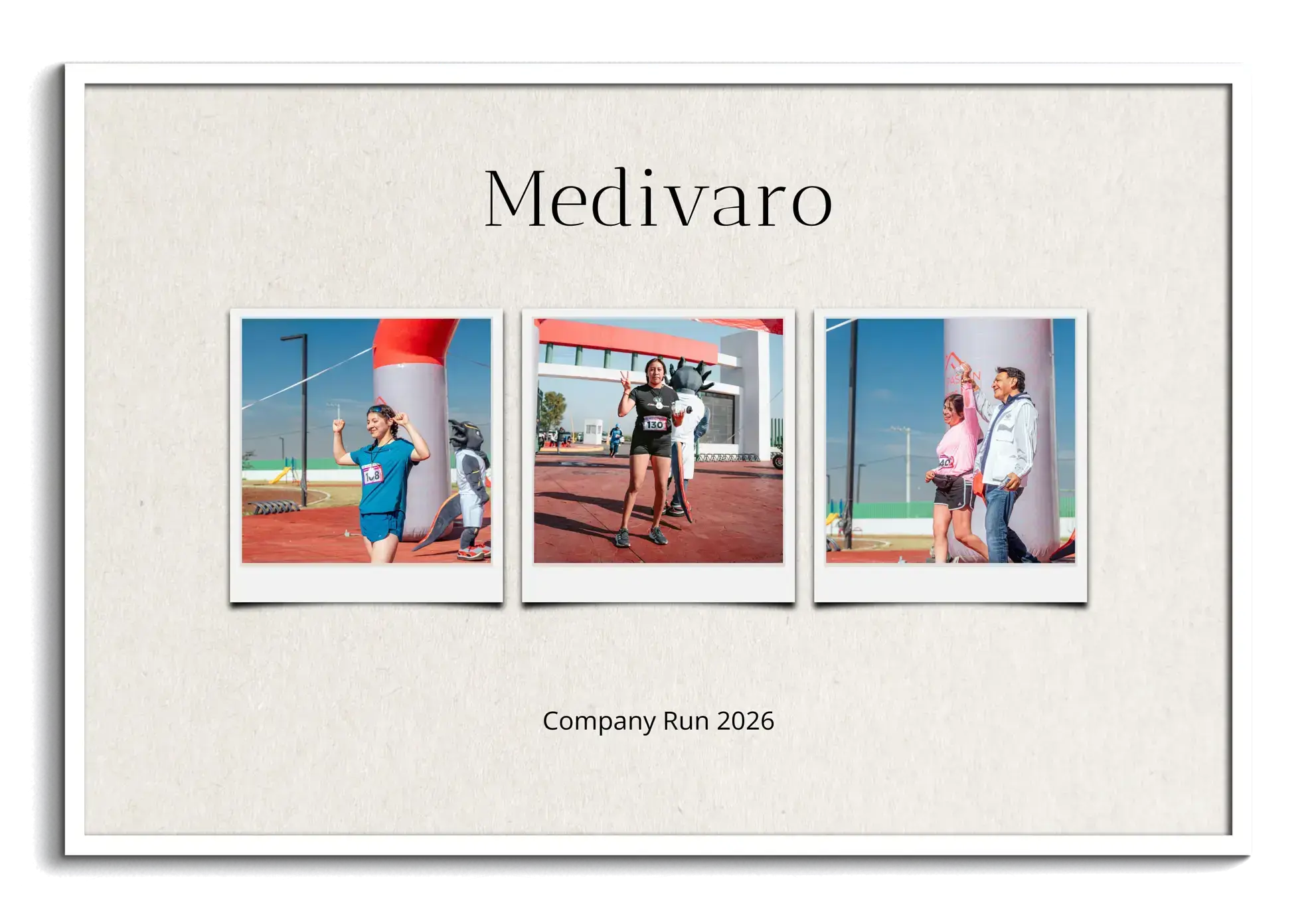 Corporate run photo collage for team spirit, race highlights, and custom event details.