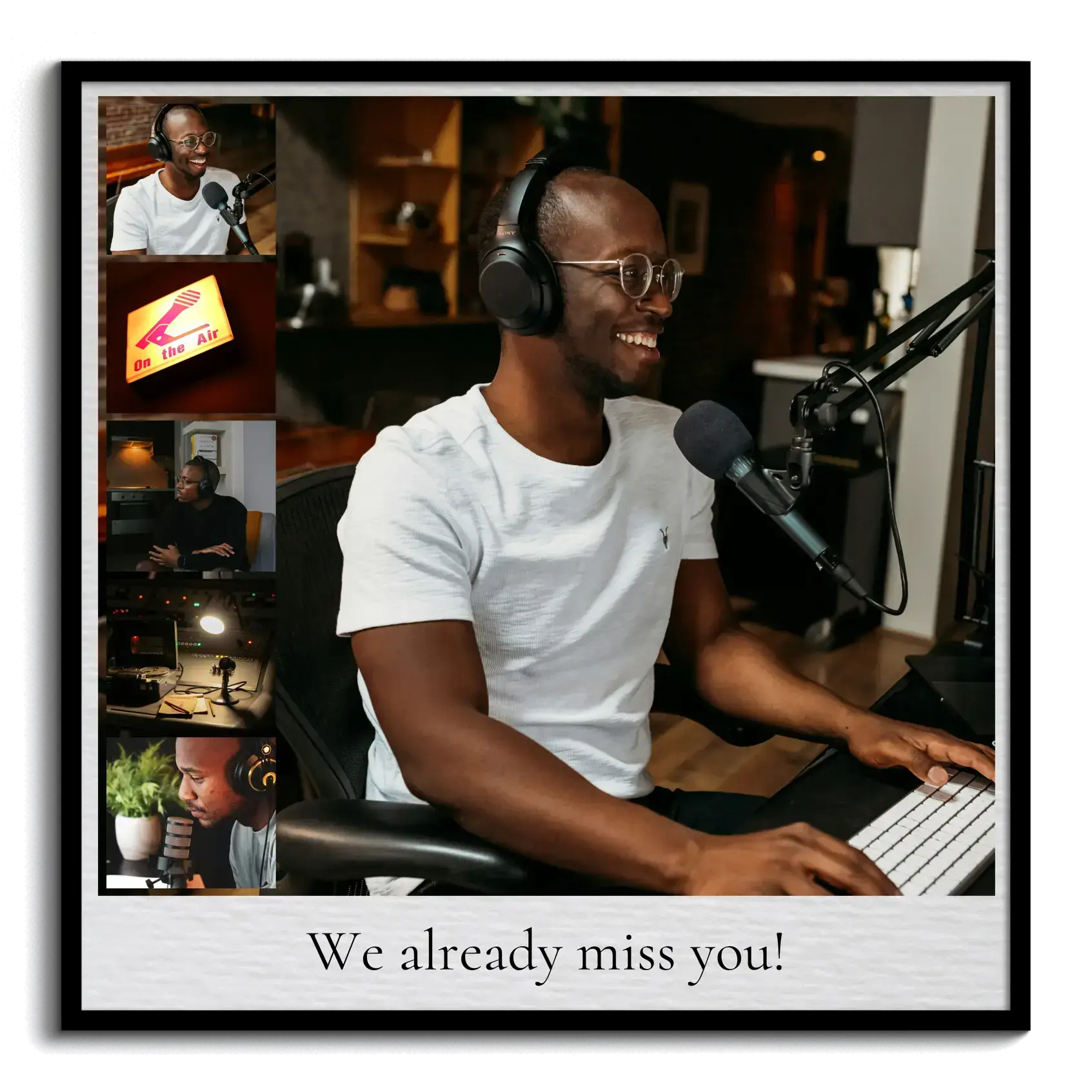 A heartfelt farewell collage with personal photos and a central message—customizable and memorable.