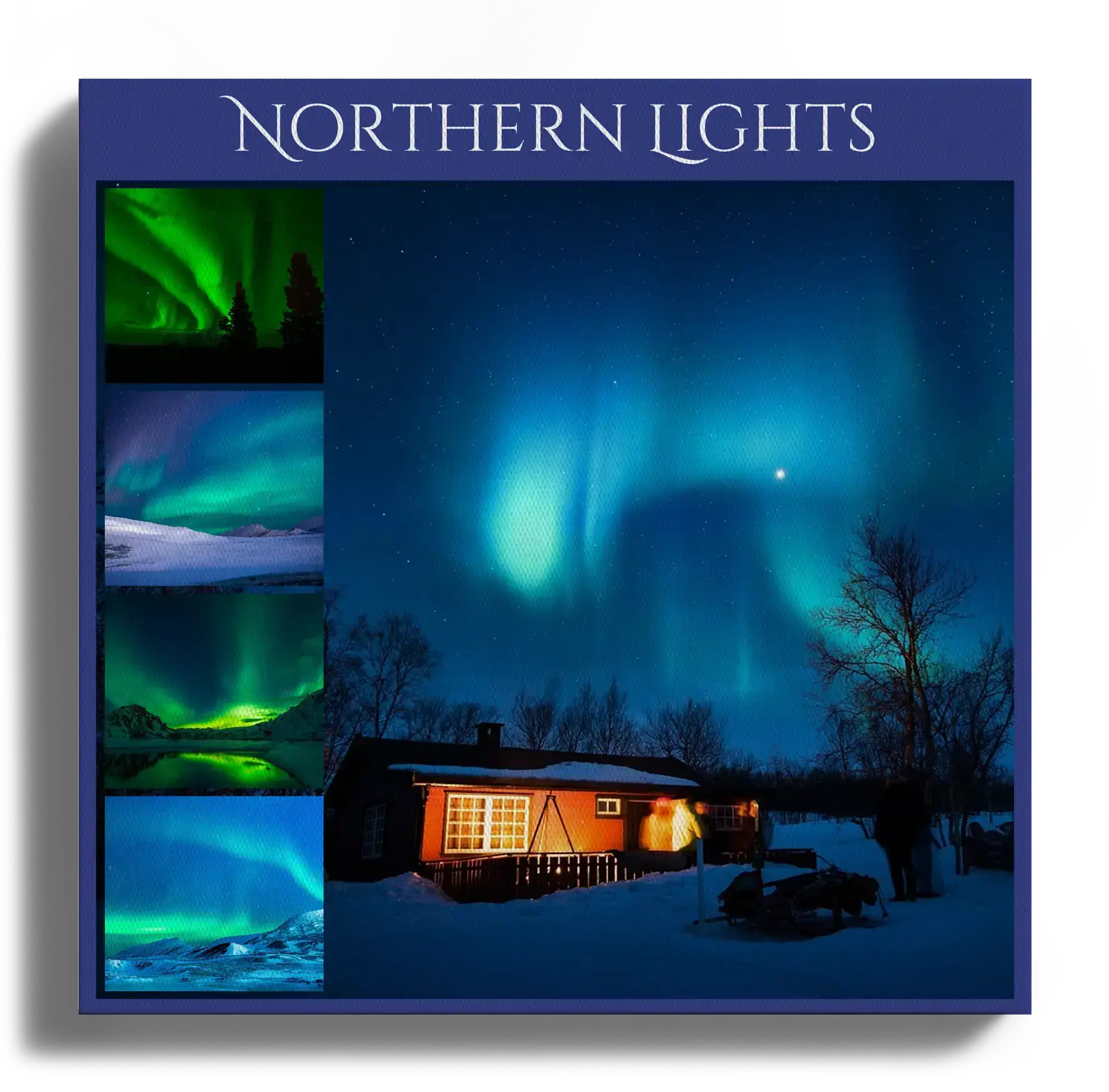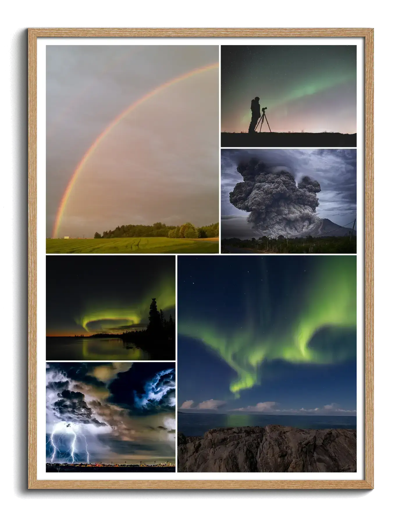 Auroras, waterfalls, rivers, rainbows, storms—celebrated in premium-printed collage art.